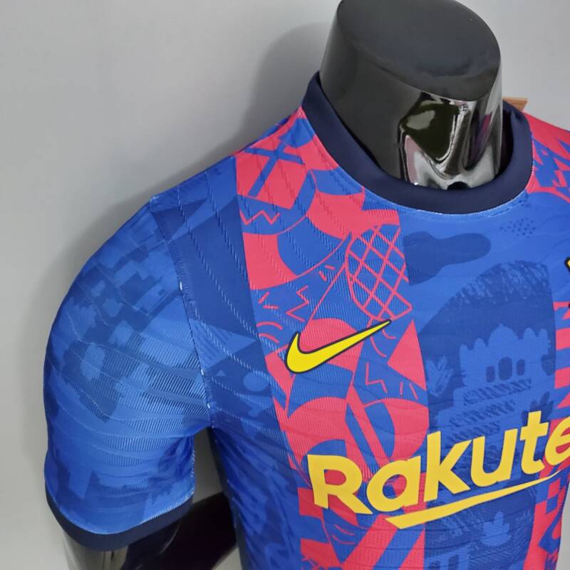 La camiseta de la «edición Champions League» del Barcelona que se ha filtrado, ofrece el mismo diseño que utilizan tus jugadores favoritos. El diseño elástico y estilizado se adapta a tus movimientos y el tejido transpirable capilariza el sudor y se seca excepcionalmente rápido para ofrecer el máximo rendimiento.