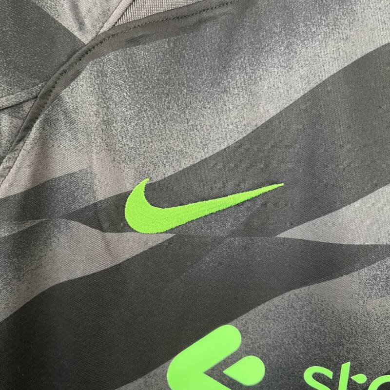 La camiseta portero Liverpool 2023/2024 negro es simplemente impresionante. Con su diseño elegante y moderno, el estampado en negro y gris crea un efecto impactante que sin duda llamará la atención de todos los aficionados del fútbol. Además, el logo de la marca y el escudo del Liverpool le dan un toque auténtico y original. Y por supuesto, no podemos olvidar mencionar su patrocinador, que completa el look de esta increíble camiseta. ¡No esperes más para conseguir la tuya y sentirte parte del equipo Liverpool!