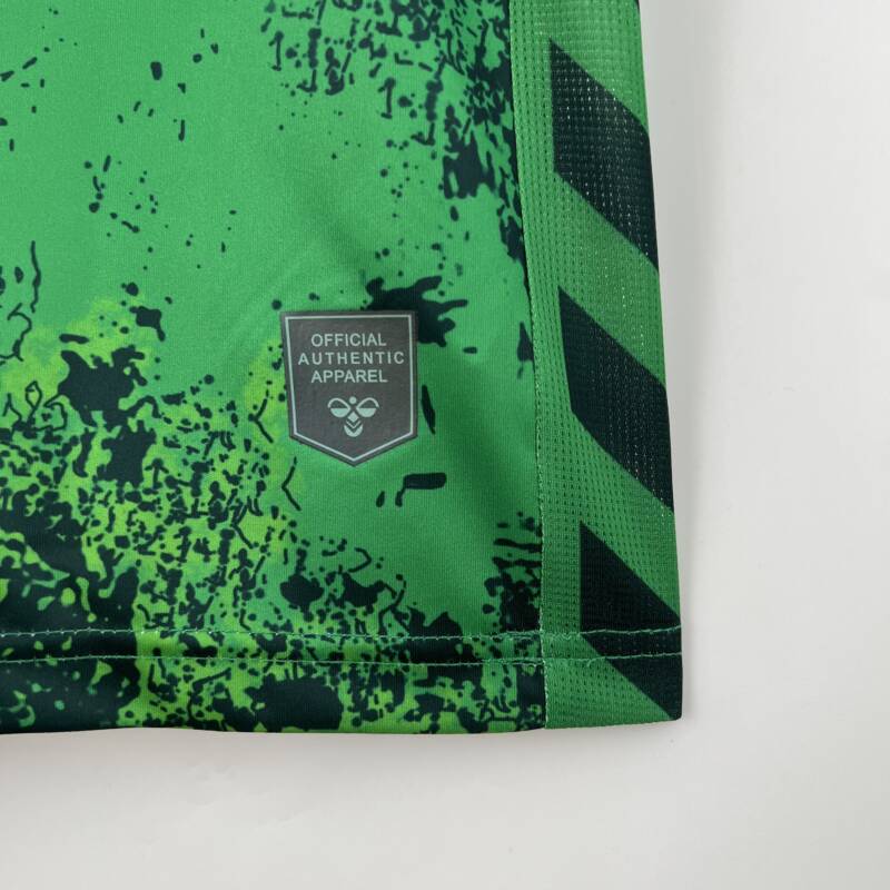 La camiseta Real Betis edición especial 2023/2024 es sin duda un modelo exclusivo. Predomina el verde y presenta detalles en dorado que le otorgan un toque sofisticado y elegante. La camiseta lleva el logo de Hummel, su escudo y el patrocinador. Sin lugar a dudas, esta camiseta es una obra maestra en diseño que todo fanático debe tener.