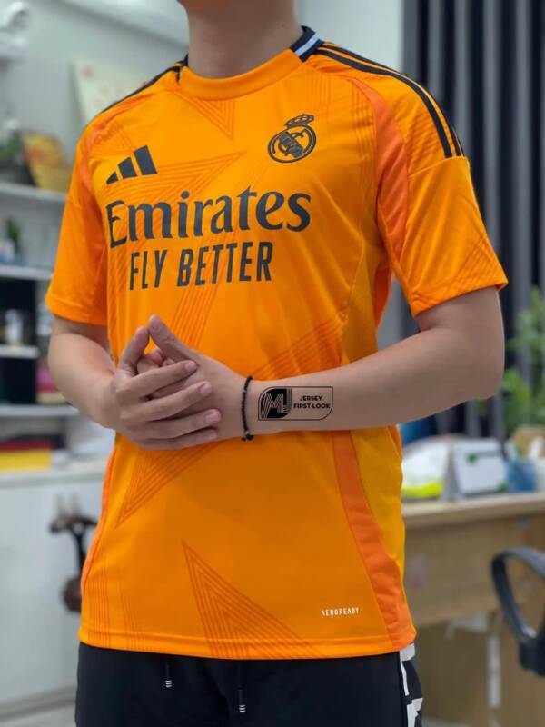 - Color Anaranjado Impactante: Esta camiseta presenta un vibrante color anaranjado que garantiza que te destacarás tanto en el estadio como fuera de él. El diseño audaz y moderno refleja la energía y la pasión del Real Madrid.