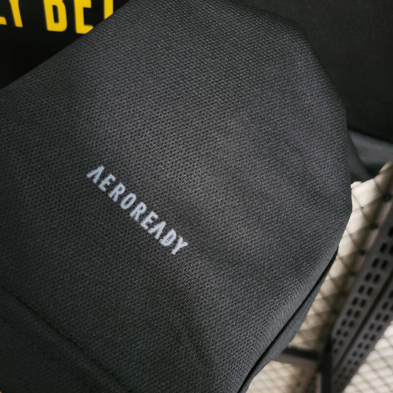 El protagonismo del color negro en el diseño brinda una elegancia sin igual, mientras que el gris carbono, en sus tres icónicas tiras, añade un toque moderno y distintivo. Pero el detalle que verdaderamente hace destacar a esta equipación es el vibrante naranja que adorna el patrocinador RMFC.