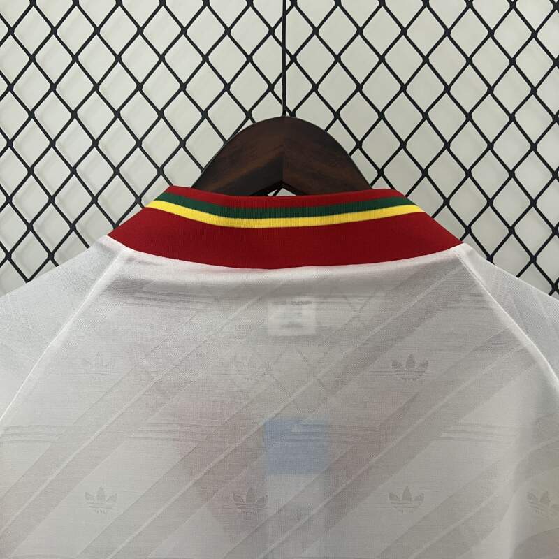 La segunda equipación de Portugal entre 1992 y 1994 es un símbolo de elegancia y simplicidad. Esta camiseta blanca, con toques discretos en rojo y verde, refleja la esencia de un equipo lleno de talento. Es más que una prenda, es un viaje al pasado y un tributo al orgullo futbolístico de un país apasionado.