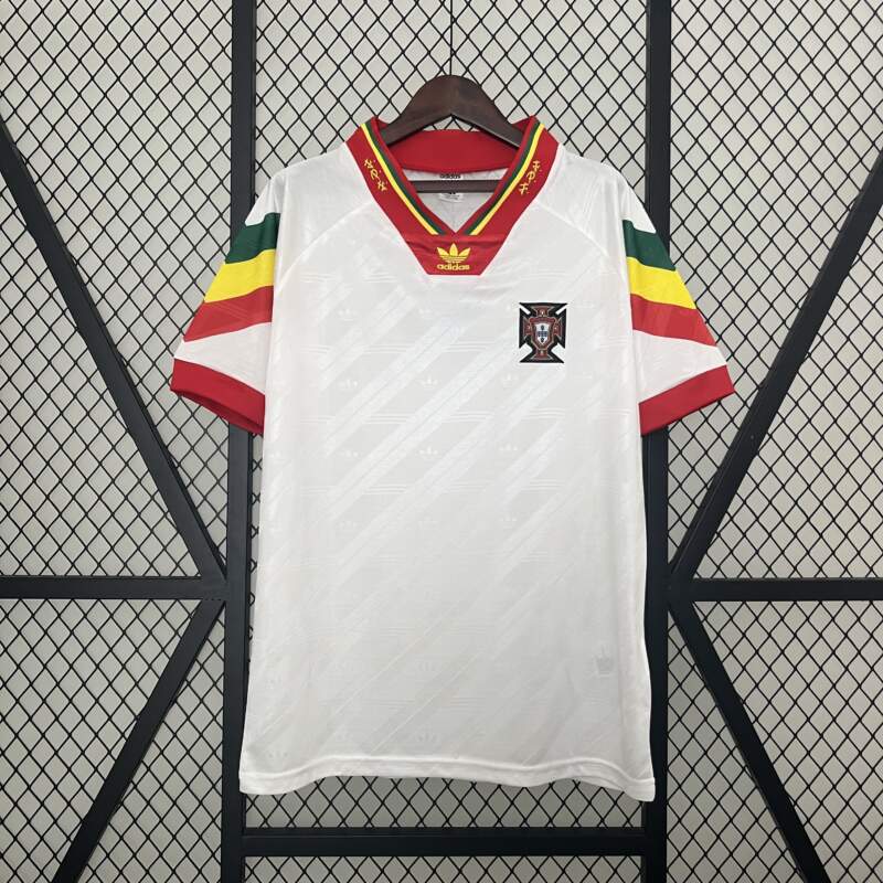 - 🎨 Diseño Exclusivo: Blanco puro con detalles sobrios, inspirado en la segunda equipación oficial de Portugal (1992-1994).