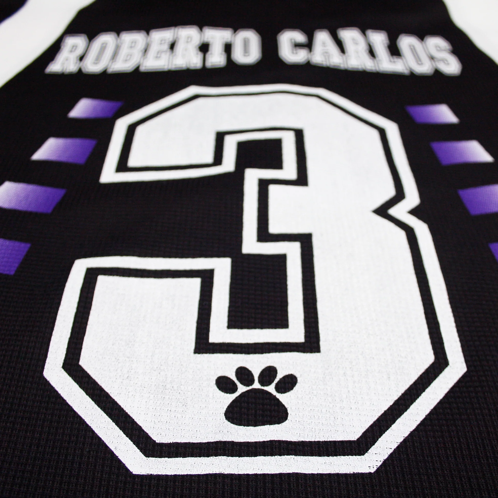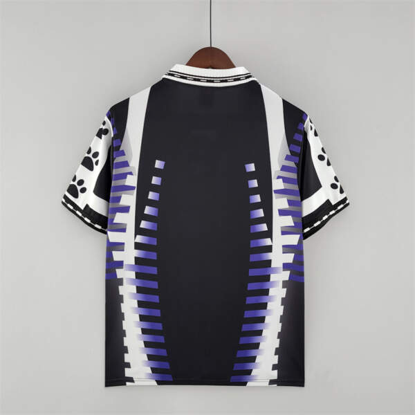 La tercera equipación de ese año fue una de las más llamativas y diferentes de la historia del club. Presenta una base en negro con detalles en blanco y morado, acompañada por el icónico patrocinio Teka en el pecho y las huellas de perro en las mangas, sello característico de la marca.