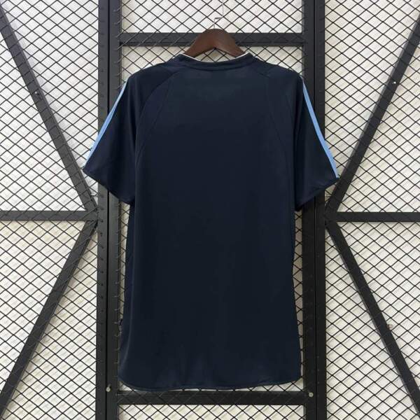 La Camiseta Retro Real Madrid 2003/04 Segunda Equipación es un auténtico homenaje a la era de los Galácticos. Diseñada por Adidas y con el patrocinio de Siemens Mobile, luce un elegante tono azul oscuro con detalles celestes en las mangas.⚽🌟