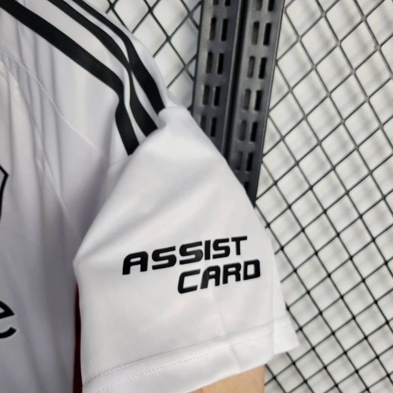 Inscripción “ASSIST CARD” en la manga blanca derecha y “RIVER PLATE” en la parte posterior del cuello, como detalles de autenticidad.