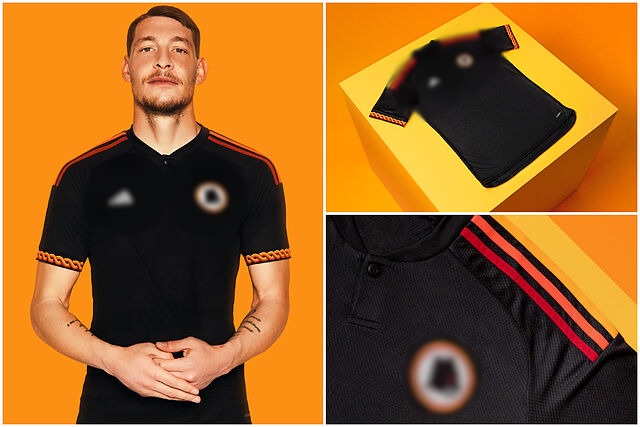 - Logo: Adids integrado en la tercera equipacion roma 2024.