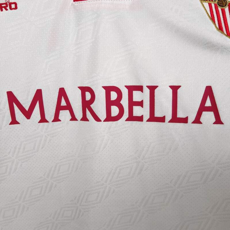 1. Replica fiel y de alta calidad: Lleva contigo una réplica impecable que revive los gloriosos años 90 del Sevilla FC. ⚪🔴