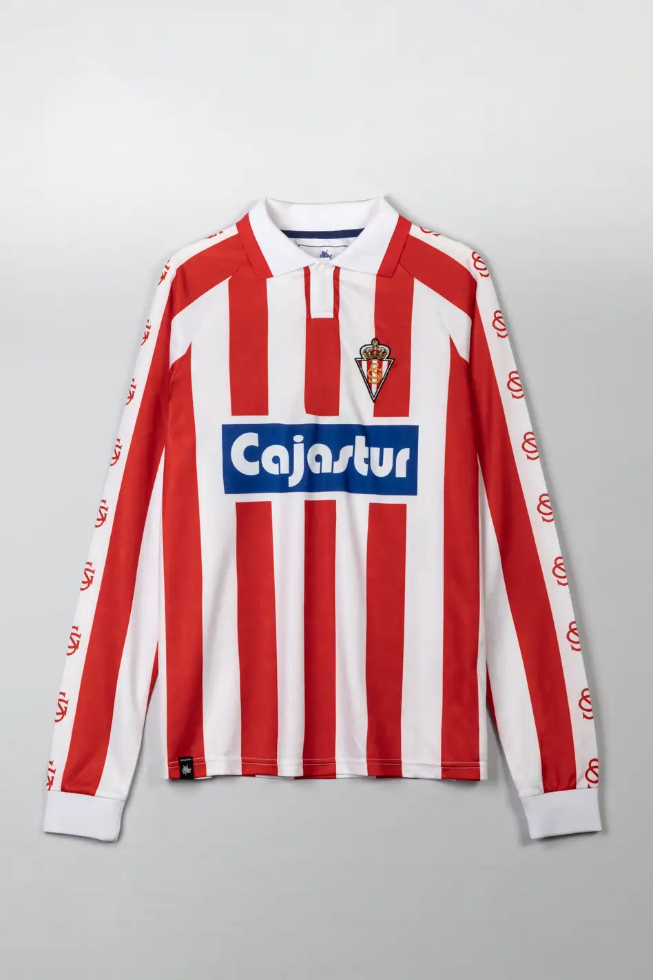 Diseño clásico: Rayas verticales rojas y blancas que representan fielmente la estética del Sporting de Gijón de la temporada 1992-1993.