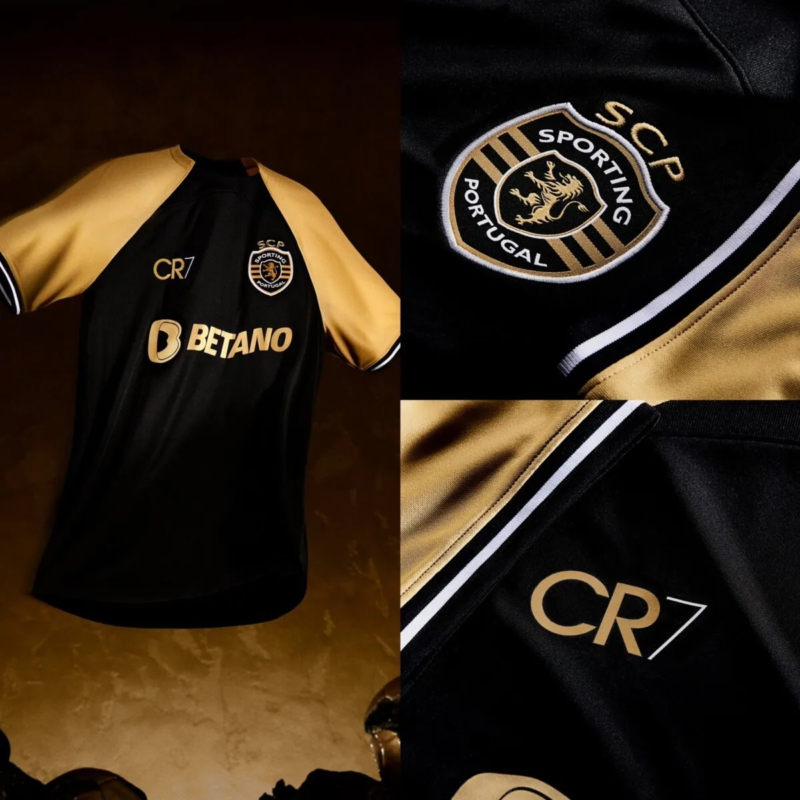 El diseño celebra a Cristiano Ronaldo con una audaz combinación de mangas doradas y torso verde oscuro, evocando el espíritu del Sporting Lisboa. El emblemático logo CR7 está realizado con maestría en el pecho, agregando un toque distintivo y emocionante.