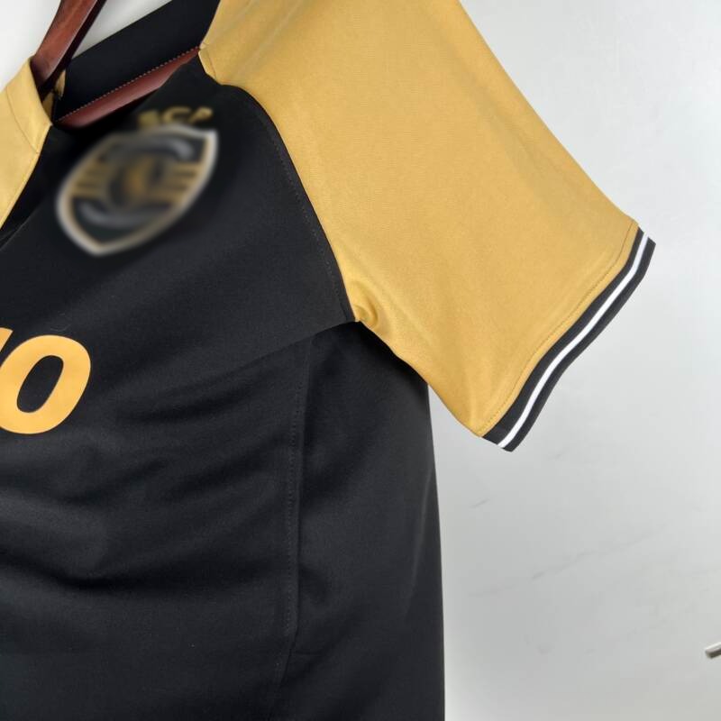 El diseño celebra a Cristiano Ronaldo con una audaz combinación de mangas doradas y torso verde oscuro, evocando el espíritu del Sporting Lisboa. El emblemático logo CR7 está realizado con maestría en el pecho, agregando un toque distintivo y emocionante.
