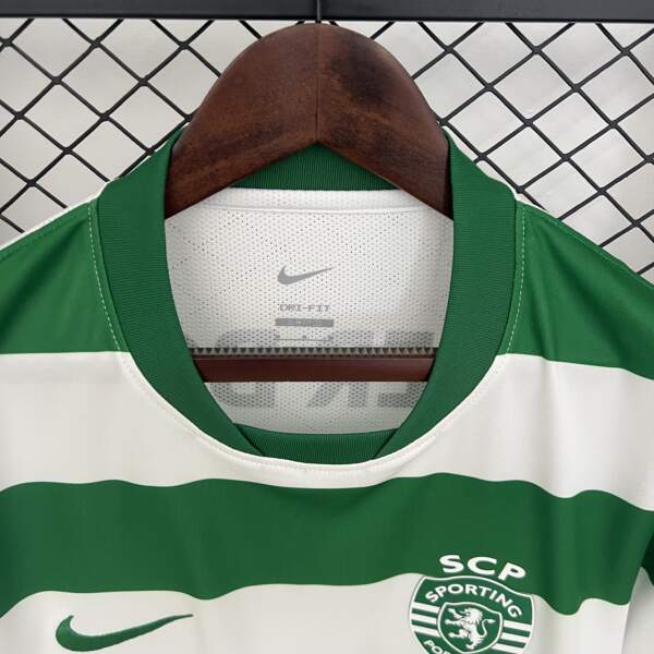 Diseño Clásico: Conserva las tradicionales rayas verdes y blancas, símbolo de identidad del Sporting, con un estilo renovado para la temporada 2025-2026.
