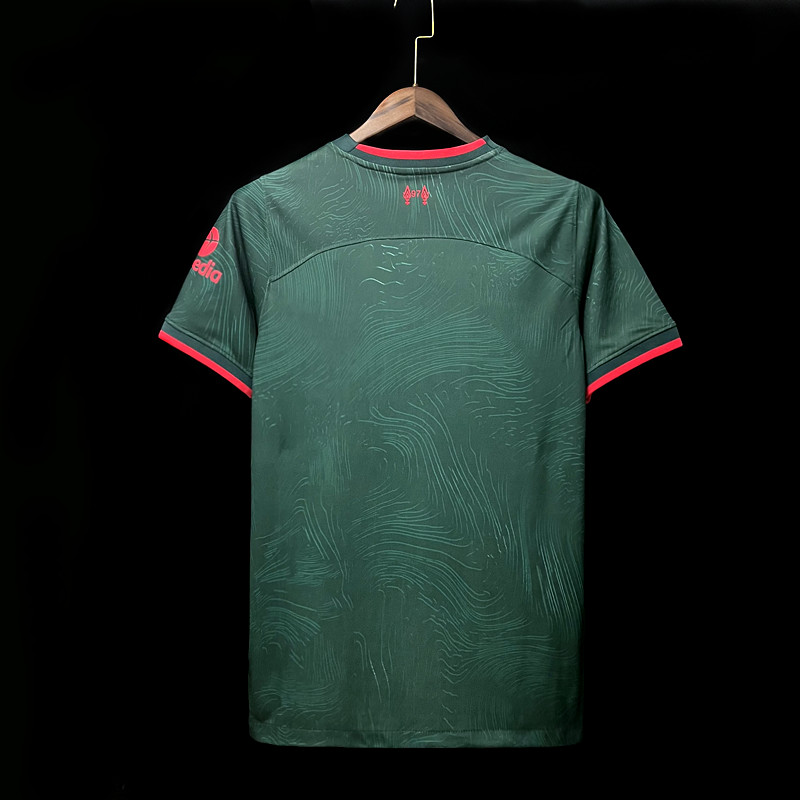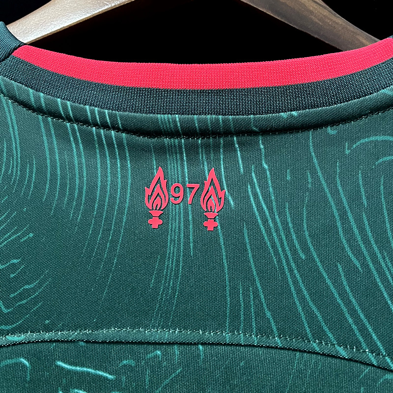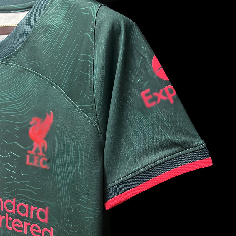 LLego la camiseta tercera equipación del Liverpool con un diseño épico que fusiona el verde con el rojo creando un estampado único e impresionante. La estructura está compuesto de poliéster, dando paso al movimiento flexible para que puedas desenvolverte sin ninguna dificultad. Además presenta una tecnología de secado rápido, lo cual hara que te sientas mas fresco y cómodo para que puedas dejar todo en cancha.