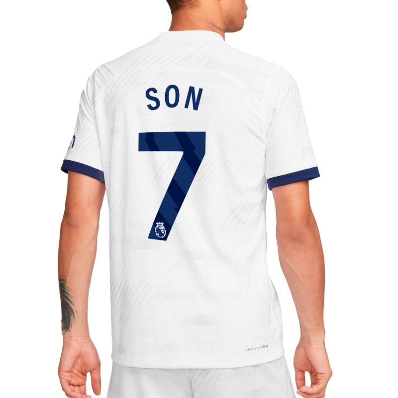 1. Diseño Moderno y Elegante: La camiseta presenta un diseño clásico en blanco con detalles en azul marino, representando la identidad visual del Tottenham Hotspur.