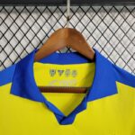 Combina los colores icónicos del club, el amarillo y el azul, creando un diseño llamativo que rinde homenaje a los 100 años de gloria. Lleva el logo del submarino, su gran escudo que los identifica y el patrocinador.