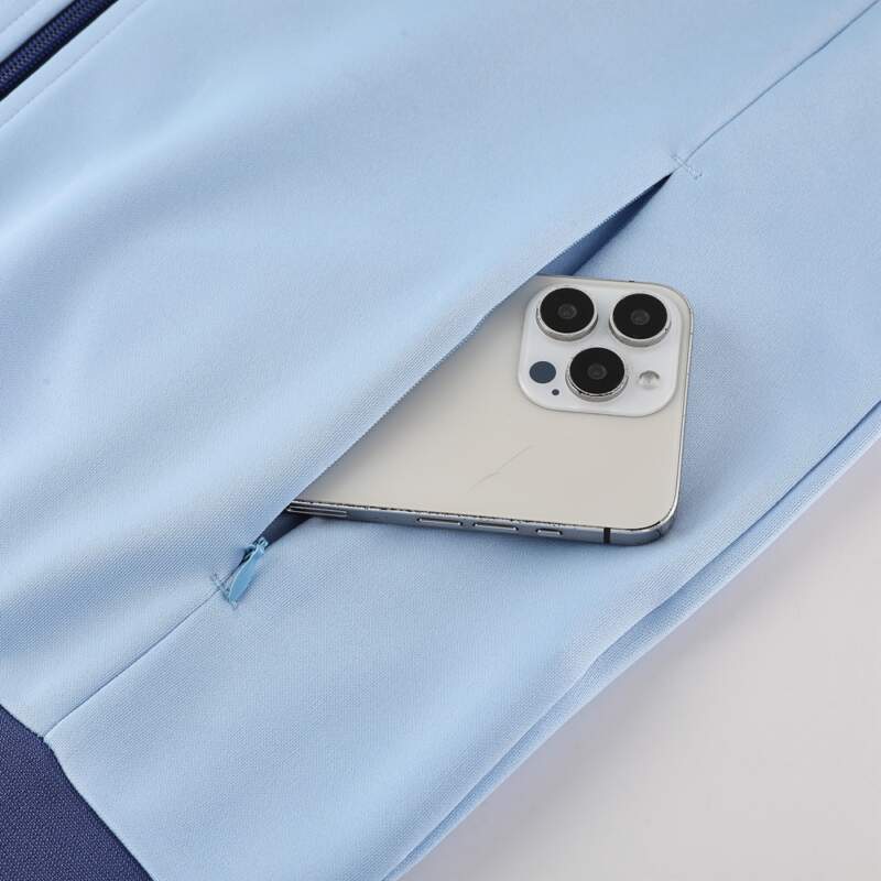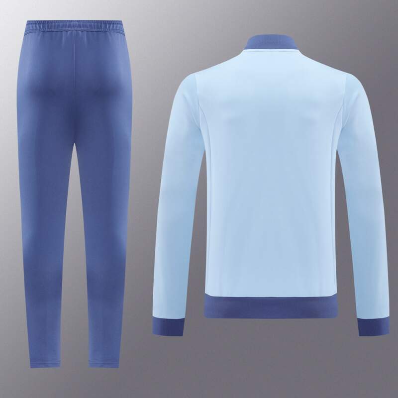 1️⃣ 🔵 Diseño exclusivo y materiales premium – Un chándal con colores vibrantes, escudo bordado y tejido transpirable, ideal para entrenar o usar a diario.