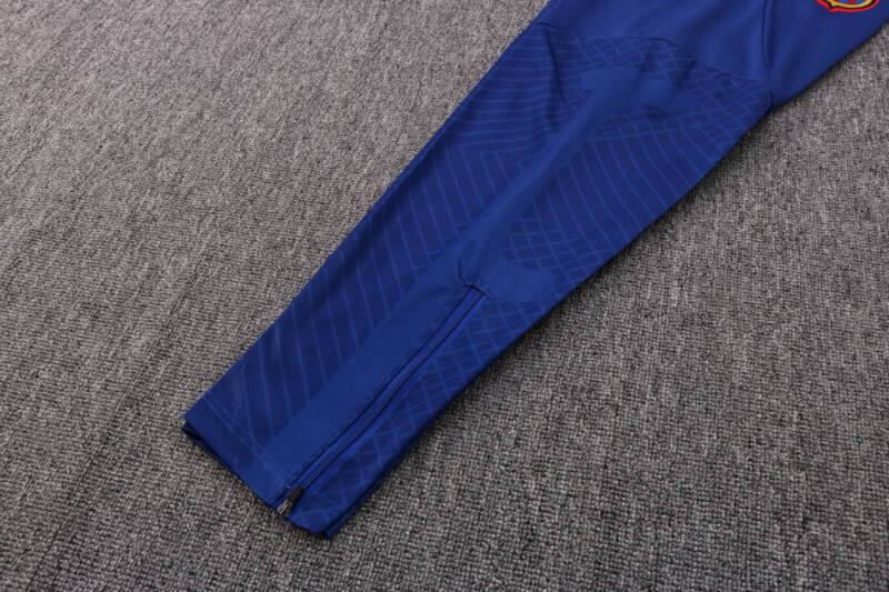 Pensando en tu equipo favorito? Llego este chándal tan representativo de la FC Barcelona con un color enterizo Azul. Este conjunto destaca por ser minimalista en su acabado, con una estructura de poliéster y tecnología de secado rápido transpirable que capilariza el sudor durante la actividad física, eso ayuda a que te sientas super cómodo y des lo mejor de ti en cada partido. La chaqueta con un corte entallado que se ajusta al tronco y los brazos, cierra con una cremallera frontal; el pantalón se sujeta con elástico en la cintura más los bolsillos laterales y cremalleras en el tobillo, para darle el toque final posee el gran escudo bordado de tu club favorito.
