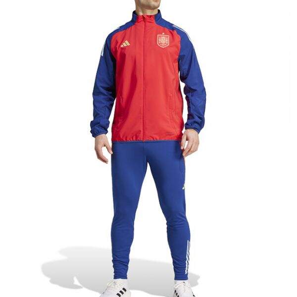 • Experimenta la elegancia única del Chándal España Eurocopa 2024, diseñado para destacar con detalles exclusivos y un toque de tradición.