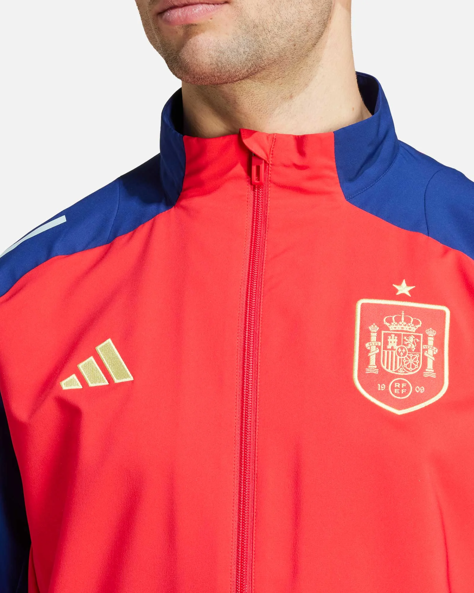• Experimenta la elegancia única del Chándal España Eurocopa 2024, diseñado para destacar con detalles exclusivos y un toque de tradición.