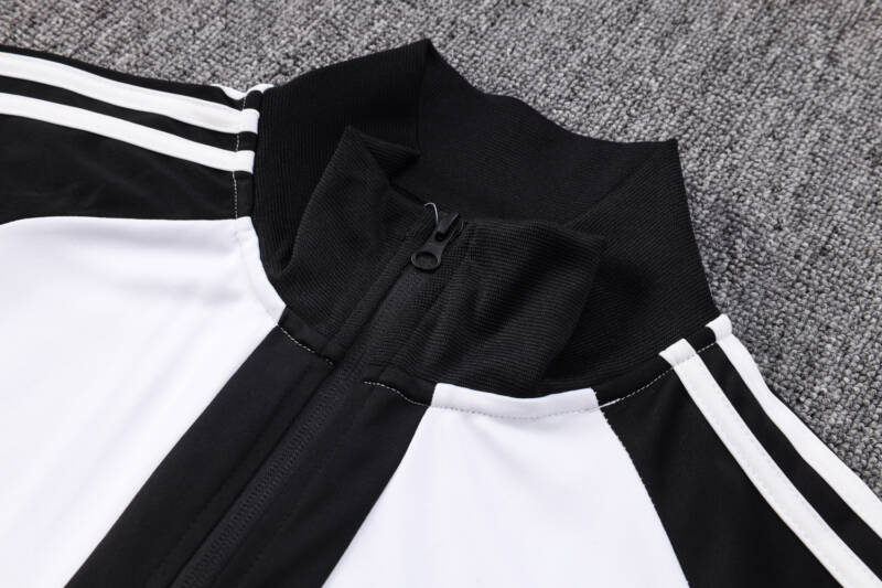 Imbictoz nos trae este fabuloso conjunto de Chandal, hace una buena combinación en blanco y negro, presenta detalles en los laterales de ambas piezas, su estructura está fabricado en tejido de poliéster con tecnología Aeroready que capilariza el sudor para mantenerte fresco y seco, podrás salir a jugar cómodamente. Este conjunto deportivo destaca su chaqueta entallada que se ajusta al tronco y los brazos, cierra con una cremallera frontal; el pantalón sujeta con elástico en la cintura, bolsillos laterales y cremalleras en el tobillo. Además, cuenta con el logo de la marca y el escudo del club profesional bordado en ambas piezas. Este conjunto esta hecho para los grandes momentos del fútbol.