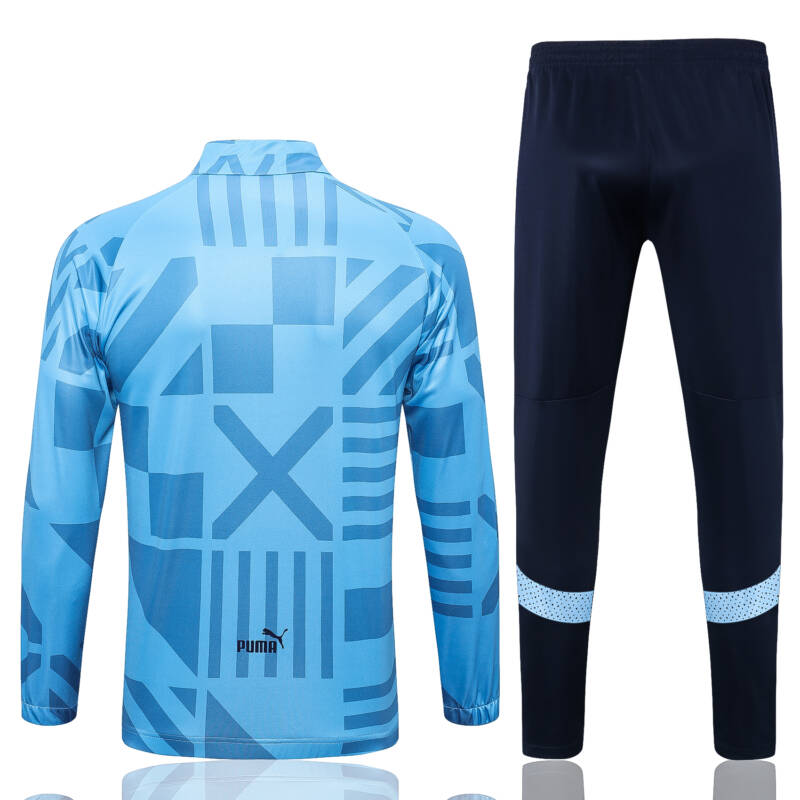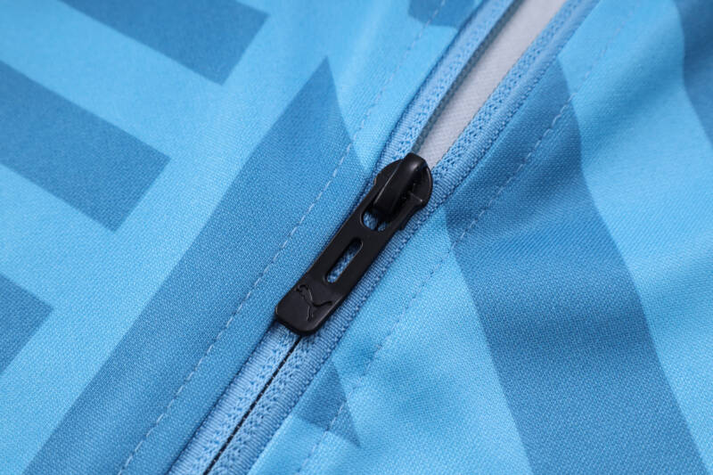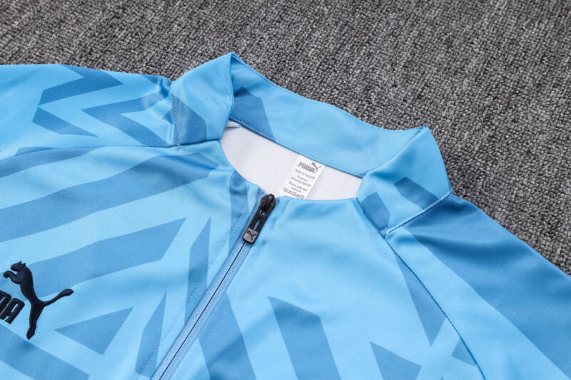 Esplendido conjunto de chándal, tiene un diseño muy atractivo que combina el celeste con el azul oscuro y los detalles de la chaqueta que le dan vida, todo este conjunto presenta un acabado espectacular, su estructura esta fabricado con el tejido de poliéster y una tecnología de secado rápido transpirable que absorbe el sudor durante la actividad física, para mantenerte seco y fresco, gracias a ello podrás rendir más en cada partido y demostraras toda tus habilidades. La chaqueta presenta corte entallado que se ajusta al tronco y los brazos, cierra con una cremallera frontal; el pantalón se sujeta con elástico en la cintura más los bolsillos laterales y cremalleras en el tobillo, para finalizar el diseño de este conjunto deportivo, no puede faltar el logo de la marca y su grandioso escudo bordado del club ¡¡Manchester City!!