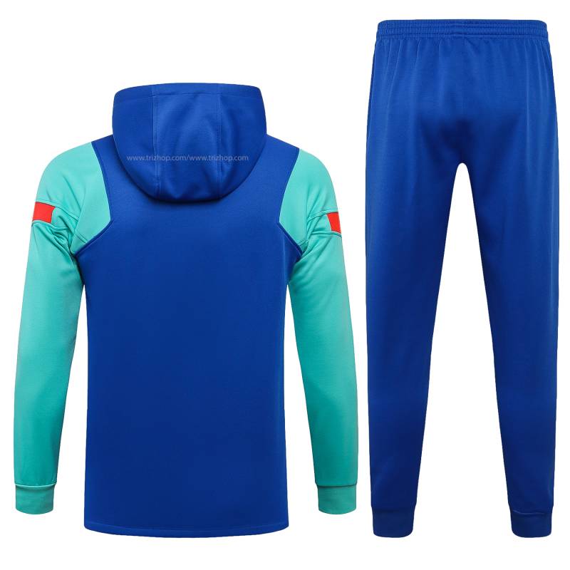 Este chándal que incluye chaqueta con capucha y pantalón del FC Barcelona se han confeccionado en tejido resistente y cálido, que también expulsa el sudor de la piel.