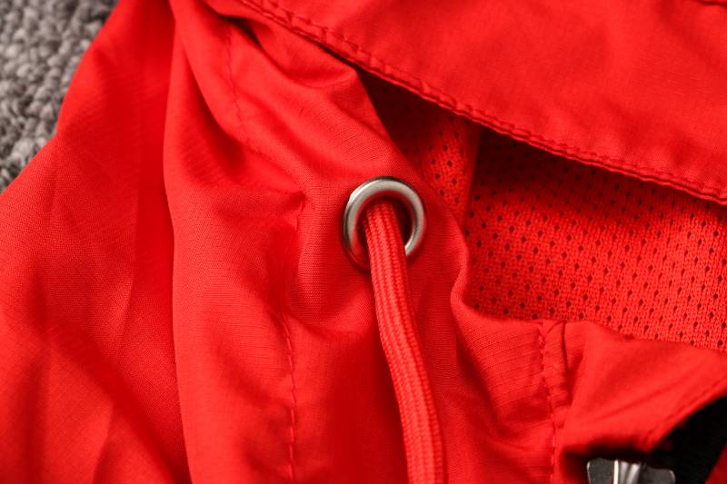 Tejido repelente al agua para mantener la transpirabilidad en días de lluvia moderada. La capucha ofrece protección cuando el tiempo empeora