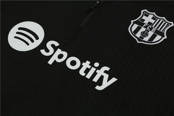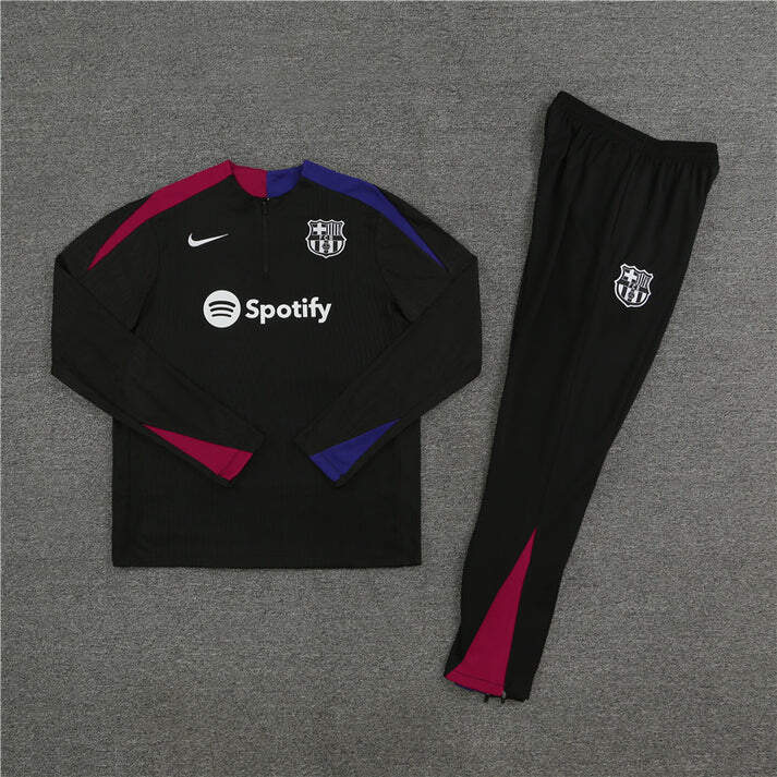 Conjunto de entrenamiento oficial del FC Barcelona 2024-2025. Diseño elegante en negro con detalles azulgrana, ideal para entrenar con estilo y comodidad.