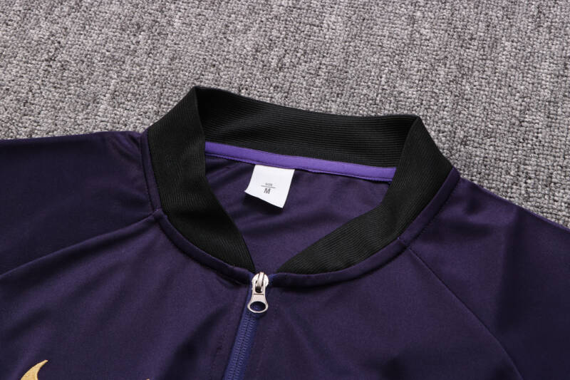 Hermoso conjunto de Chándal combinado con dos colores púrpura y negro, cuenta con detalles exclusivos en la chaqueta y pantalón, su buena estructura de Poliéster llama la atención a primera vista. Presenta una tecnología transpirable que capilariza el sudor para mantenerte fresco y cómodo mientras realizas tus actividades físicas. El cuello bajo con sus combinaciones le dan el estilo retro, la chaqueta entallada se ajusta al tronco y los brazos, te mantienen súper relajado en tus sesiones, cierra con una cremallera frontal; el pantalón se sujeta con elástico en la cintura, bolsillos laterales y puños de canalé. Completando el diseño, conserva el escudo bordado en ambas piezas que demuestra que eres parte del gran club. ¡Ideal para identificarte con tu club favorito, llegar a la cancha y lucirte!