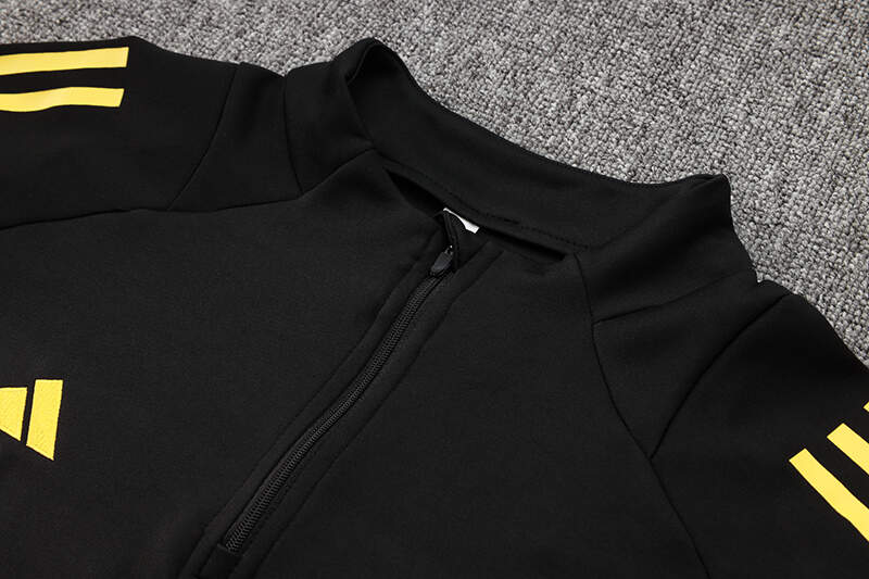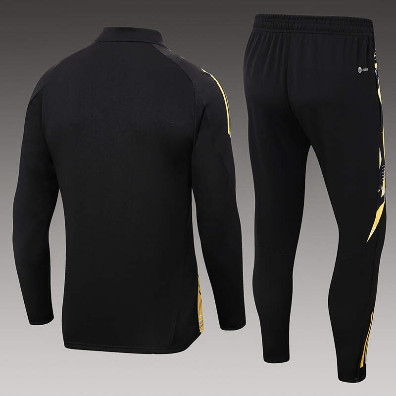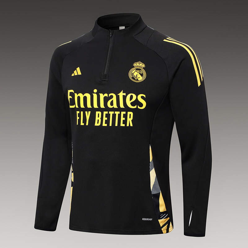 - Diseño Exclusivo 🎩: Este chándal en elegante negro con detalles dorados es perfecto para lucir el orgullo merengue con un toque sofisticado. Solo en Imbictoz encuentras esta edición de alta calidad que resalta cada detalle ⚽.