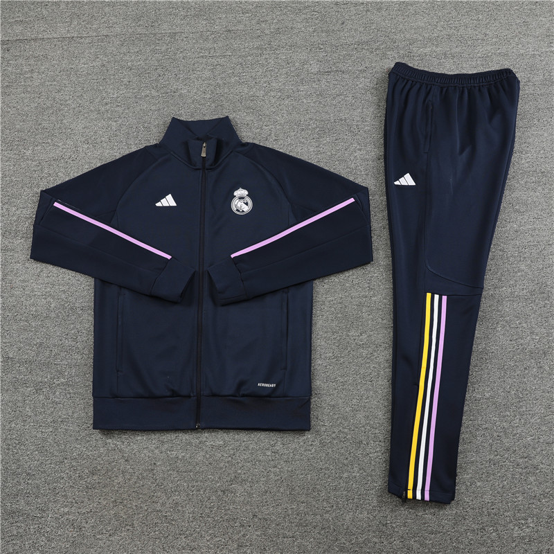 ¡Vive la emoción del fútbol con nuestro exclusivo Chandal Real Madrid Azul Marino 2023/2024! Sumérgete en un mar de elegancia y pasión que solo el azul marino puede ofrecer.