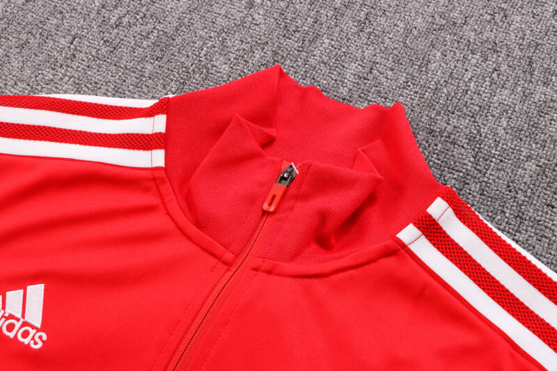 Fabricado de poliéster, la chaqueta presenta corte entallado que se ajusta al tronco y los brazos, cierra con una cremallera frontal, las mangas largas son con puño de canalé; el pantalón se sujeta con elástico en la cintura, bolsillos en los laterales y cremalleras en los puños. Además, presenta el icónico logo de la marca y el gran escudo bordado del club ¡¡La Sao Paulo de Brasil!!
