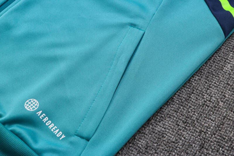Chándal reluciente en verde turquesa con detalles en los laterales de las mangas. Diseñada con la tecnología Aeroready transpirable que absorbe la humedad, te mantiene fresco y cómodo, para que puedas desenvolverte sin complicaciones, este conjunto deportivo puede volverse uno de tus favoritos por la calidad y su gran experiencia que ofrece en la práctica.