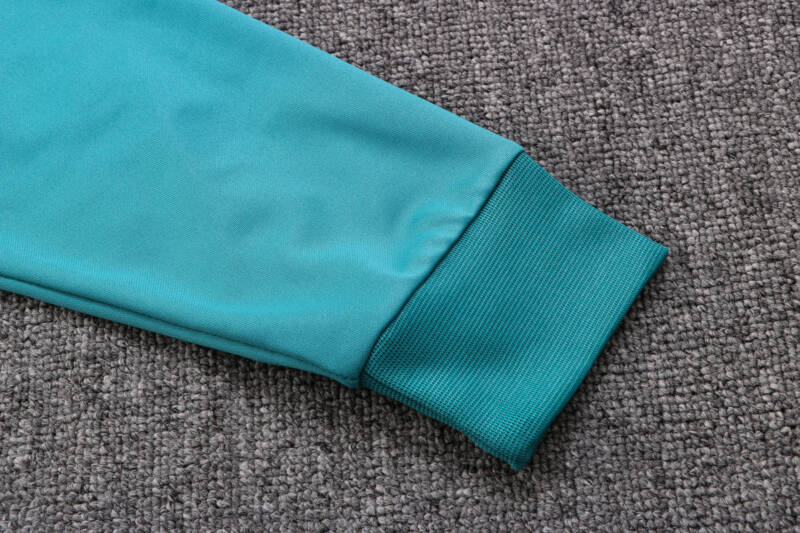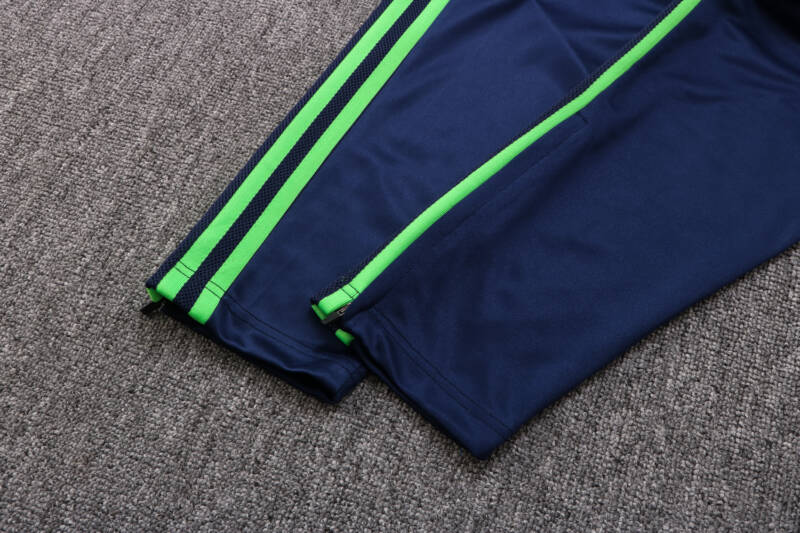 Su estructura pose tejido de poliéster; la chaqueta entallada se ajusta al tronco y los brazos, cierra con una cremallera frontal, las mangas largas son con puño de canalé. El pantalón sujeta con elástico en la cintura, cremalleras en el talón y bolsillos ocultos en los laterales. Además, presenta en ambas piezas el logo de la marca y el escudo de tu club favorito!!