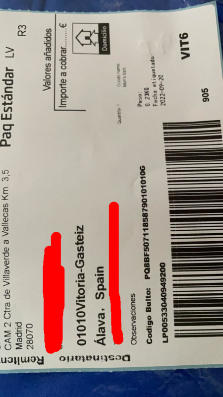 - Envío del comprobante de envío y fotografía del producto por correo electrónico y whatsapp.