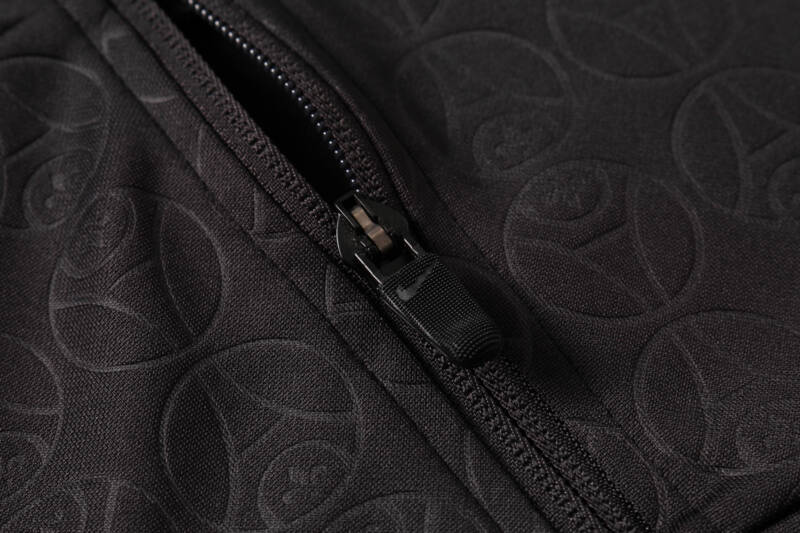 • Bolsillos con cremallera en las costuras laterales; cierre de cremallera; dobladillo de canalé; presilla para colgar