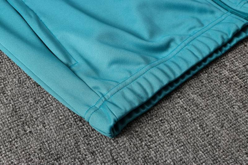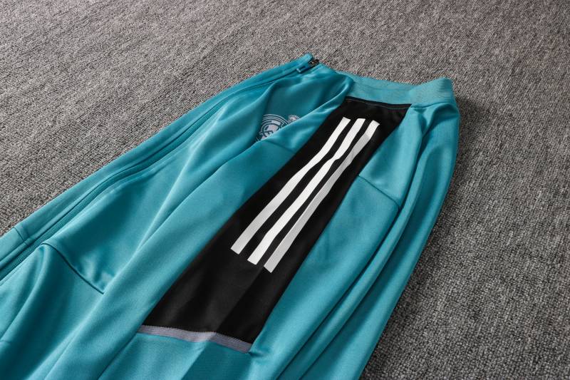 Esta nueva chaqueta del Real Madrid presenta un corte entallado y se ha confeccionado en tejido resistente y transpirable, que expulsa el sudor de la piel.