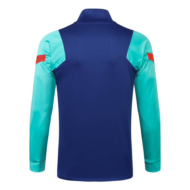 Esta nueva chaqueta del FC Barcelona presenta un corte entallado y se ha confeccionado en tejido resistente y transpirable, que expulsa el sudor de la piel.