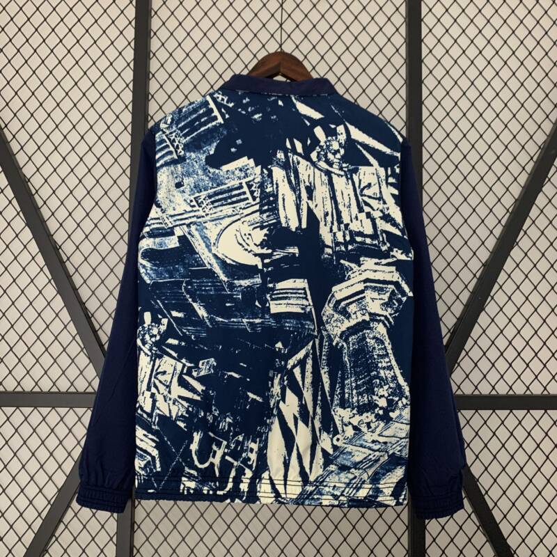 La chaqueta reversible Bayer de Munich es una declaración de lealtad y orgullo por uno de los clubes más grandes del fútbol europeo. El lado azul con detalles en rojo evoca la tradición y la grandeza del Bayern de Munich, mientras que el lado azul con detalles en blanco rinde homenaje a los colores del club. Esta combinación de colores refleja no solo la identidad visual del Bayern de Munich, sino también su espíritu competitivo y su legado de éxito en el fútbol. Al llevar esta chaqueta, llevas contigo el corazón del club y su historia de triunfos, haciendo una declaración de estilo que resonará en los corazones de los fanáticos en todo el mundo.