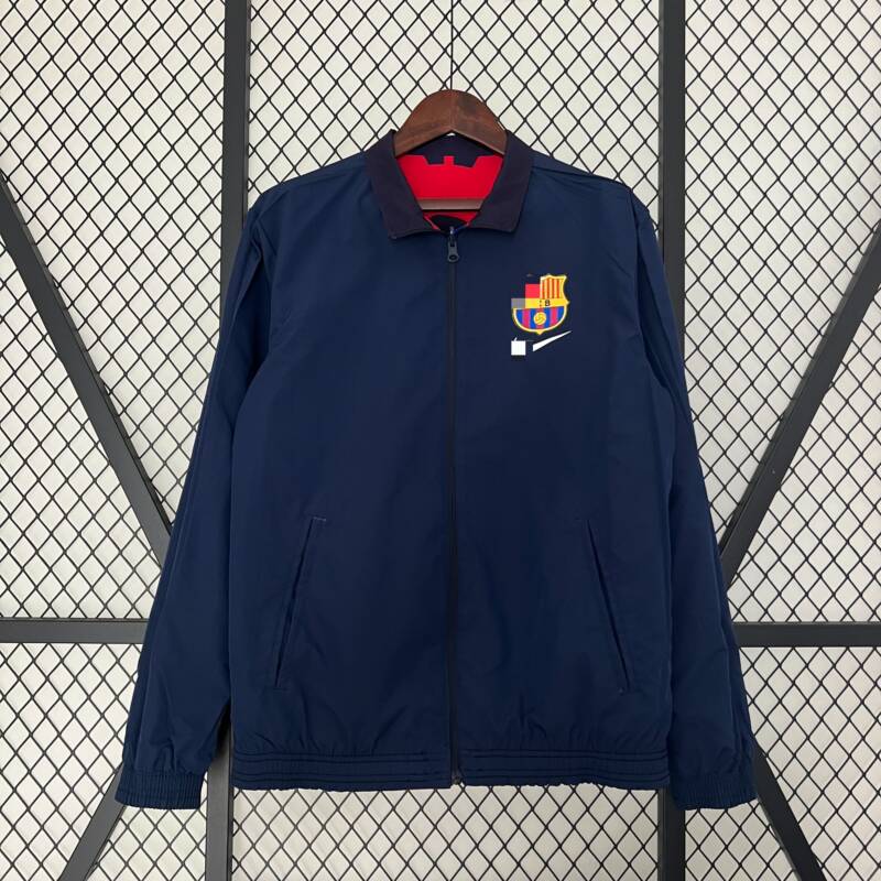 ¡Celebra el amor por el Barça con la chaqueta reversible 2023/24! Colores que laten como un corazón, estilo que impacta en cada paso. ¡Únete al espíritu del Barça!