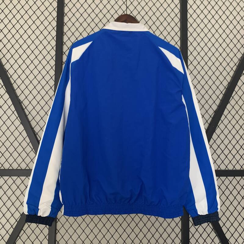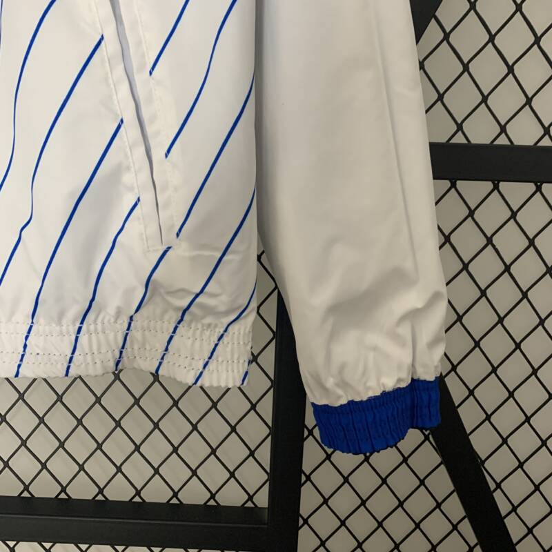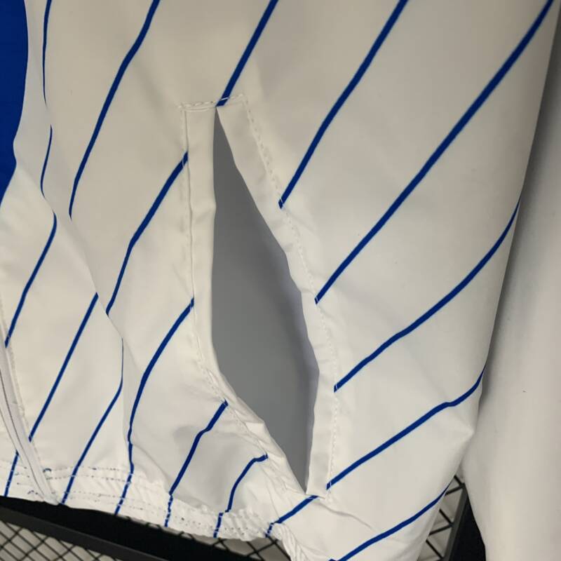 Las franjas azules sobre blanco y las líneas azules sobre blanco en su reverso, representan la elegancia y el dinamismo de la ciudad de Nápoles. Inspirada en la rica historia y la pasión del fútbol italiano, esta chaqueta captura la esencia del estilo italiano contemporáneo.