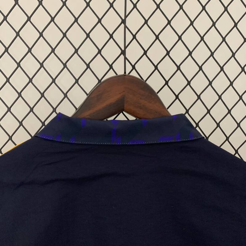 La chaqueta reversible del Real Madrid para la temporada 2023/24 es una verdadera declaración de estilo y pasión futbolística. Confeccionada en un elegante azul oscuro, este diseño presenta detalles en azul claro en toda el lado y en amarillo en el otro, proporcionando dos opciones vibrantes para expresar tu lealtad al club más grande del mundo.