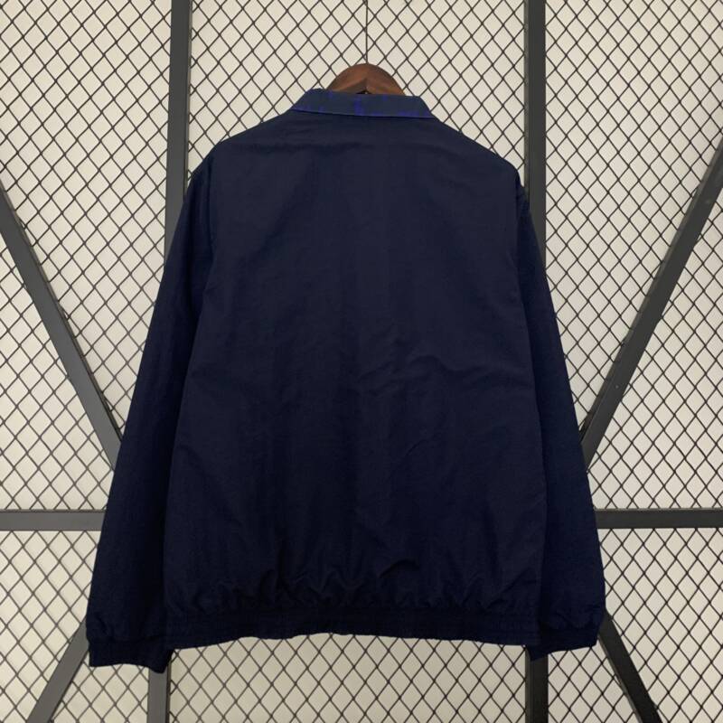 Sumérgete en el espíritu del Real Madrid con esta chaqueta reversible: elegancia en azul oscuro. ¡Una declaración de estilo imprescindible para los verdaderos fanáticos del fútbol!