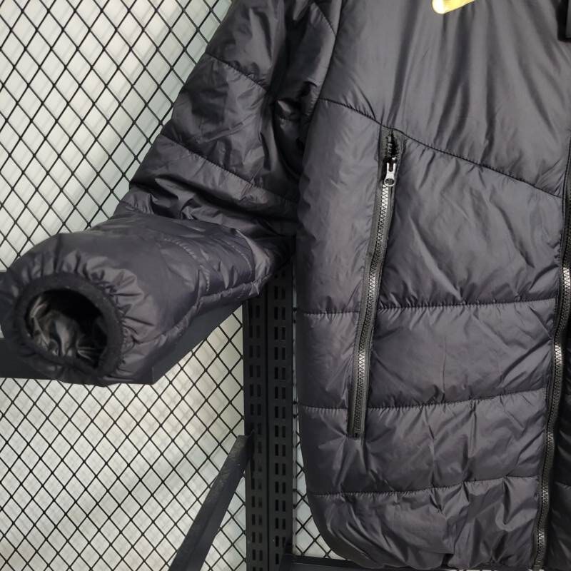 - Diseño Elegante: Con el escudo del FC Barcelona en el pecho, esta chaqueta negra destaca por su estilo moderno y sofisticado.