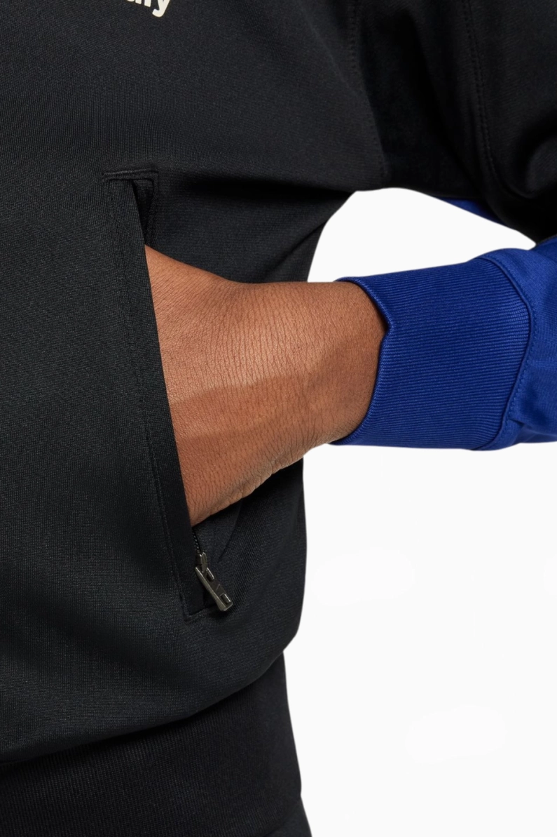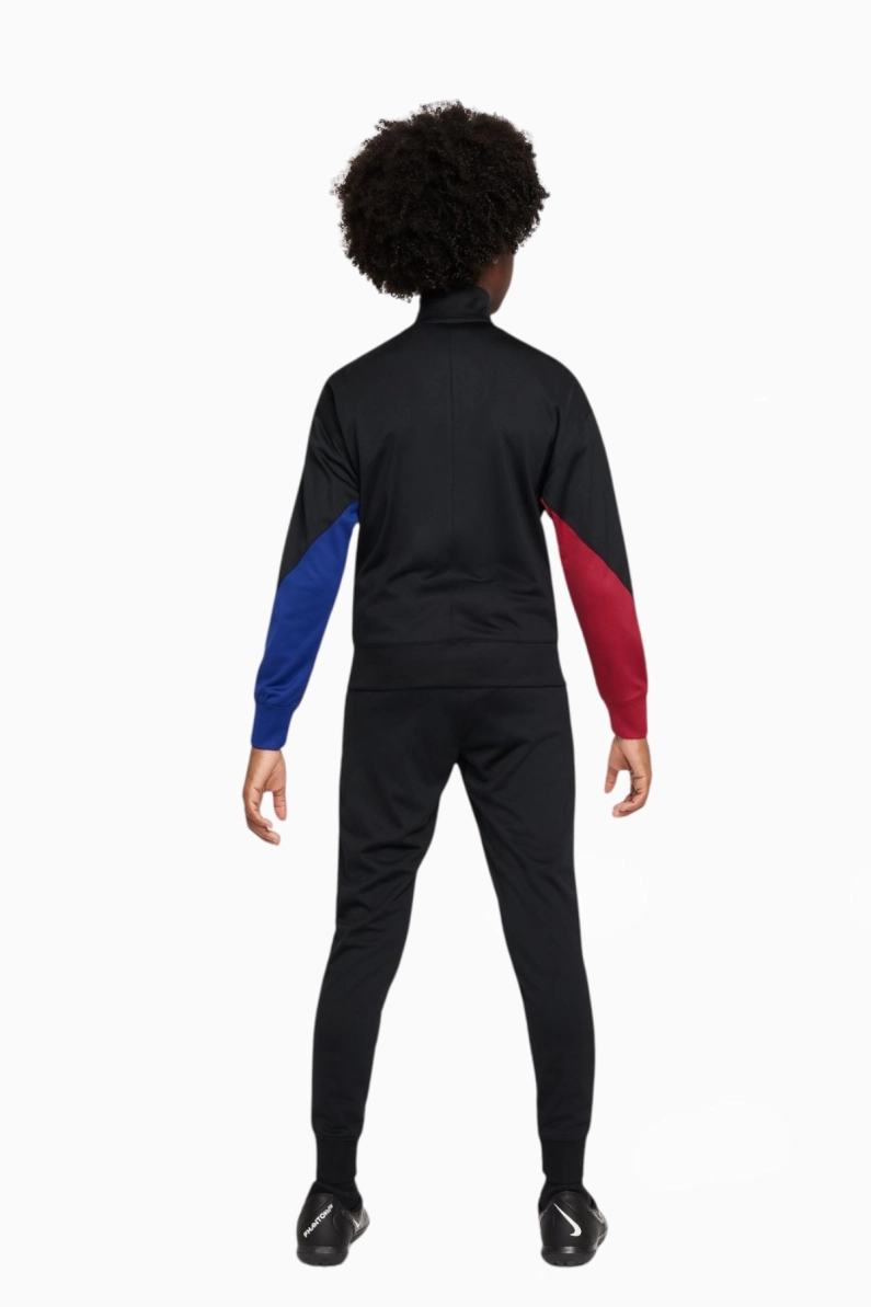 - Diseño moderno y elegante: Este chándal destaca con su base negra y detalles en rojo y azul en las mangas, reflejando la identidad inconfundible del Barça. 🖤🔴🔵