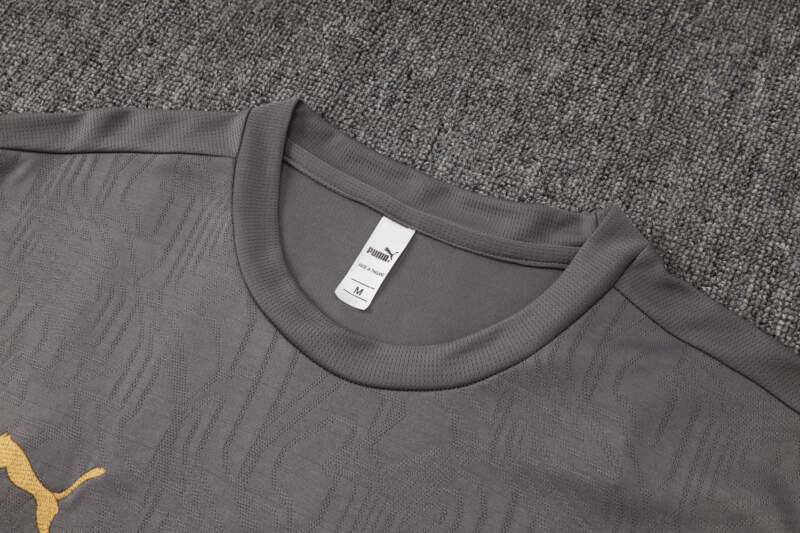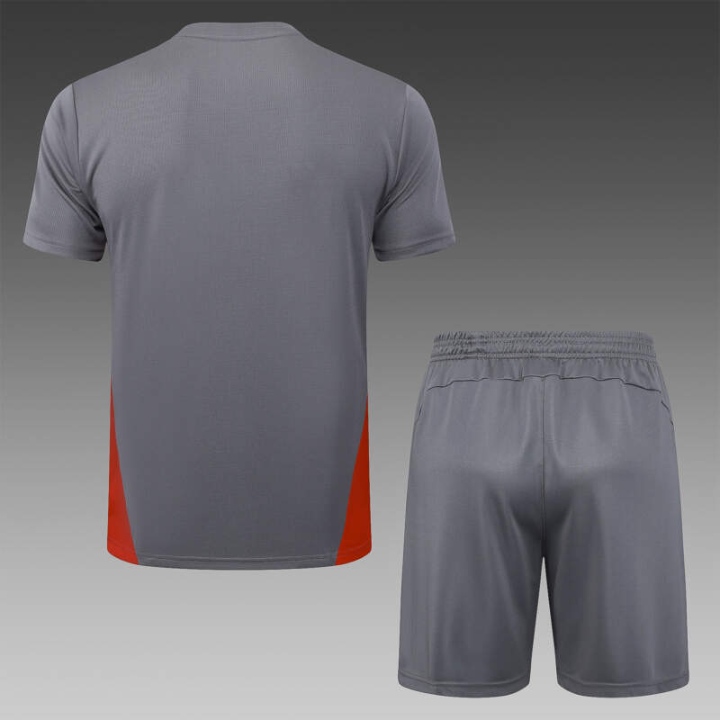 El conjunto presenta un tono gris moderno como base, acompañado por detalles en dorado y rojo que realzan el orgullo del AC Milan. Una combinación sobria pero imponente, pensada tanto para el entrenamiento como para vestir con estilo fuera del campo. 💼⚽