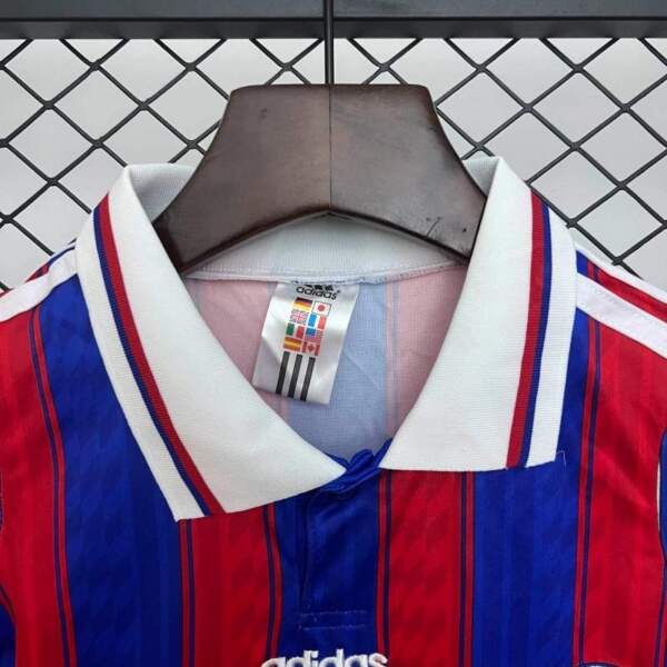 Diseño histórico: Inspirado en la primera equipación oficial del Bayern de Múnich de 1995-1997, con el clásico rojo y azul que simboliza la grandeza del club.