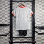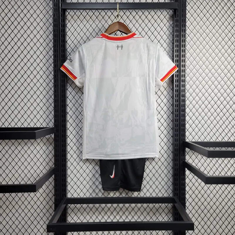 Conjunto Niño Liverpool Tercera Equipación 2024-2025 ⚪🔴⚫ El Conjunto Niño Liverpool Tercera Equipación 2024-2025 es la elección perfecta para los jóvenes aficionados que quieren lucir los colores alternativos de su equipo con un toque elegante y moderno. Este conjunto incluye una camiseta en blanco con detalles en rojo y un pantalón corto en negro, ofreciendo un contraste atractivo que destaca el espíritu de los «Reds».