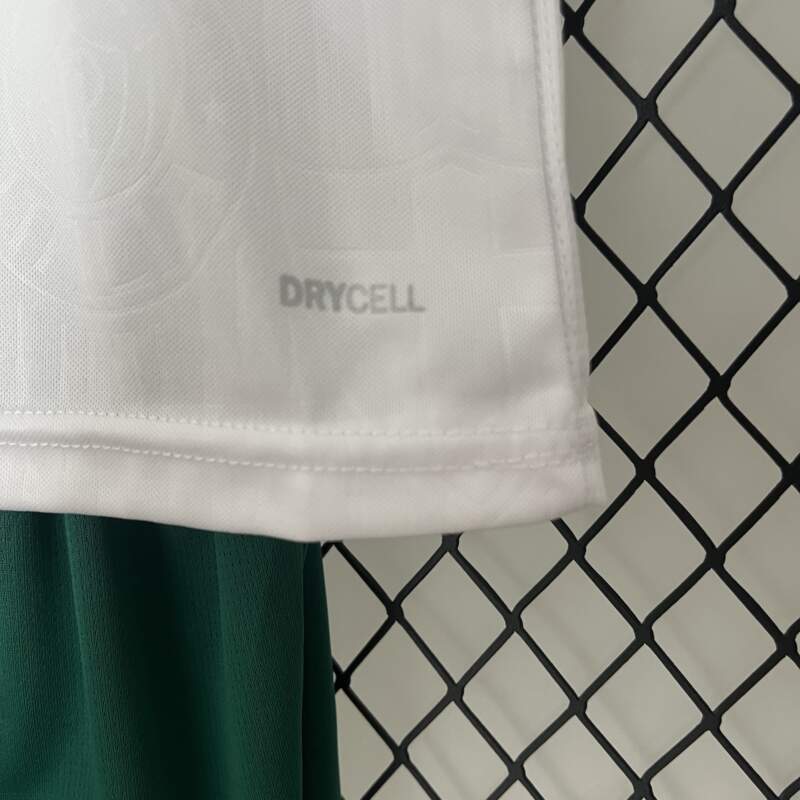 ¡El Conjunto Niño Palmeiras Segunda Equipación 2024-2025 es perfecto para los más pequeños que quieren destacar con estilo! 🌿👕 Con colores blanco y verde y detalles dorados en el patrocinador, es una opción única para los fanáticos del equipo.
