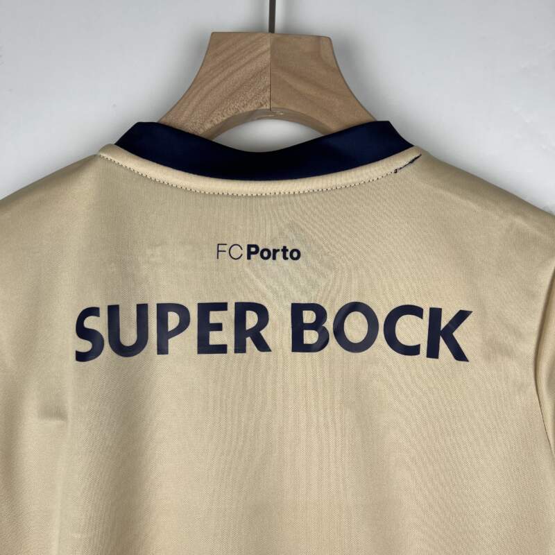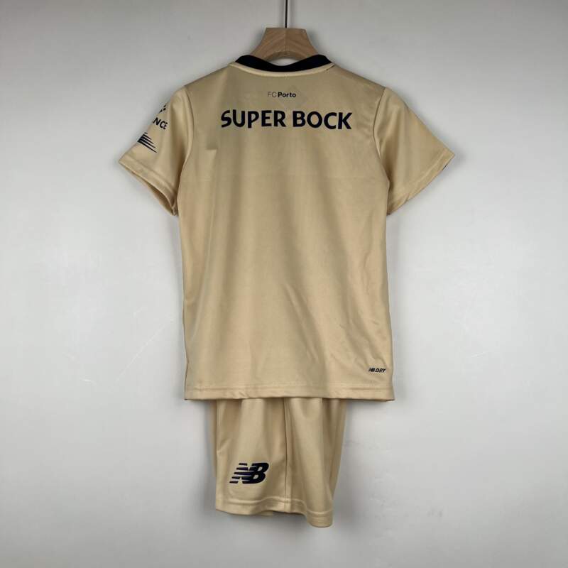 Regala a los pequeños fans del fútbol el exclusivo Conjunto Niño Porto Segunda Equipación 2023-2024. Diseñado en elegante color dorado, este conjunto combina calidad, comodidad y la pasión del club portugués. Perfecto para lucir en el campo o en el día a día. ⚽✨